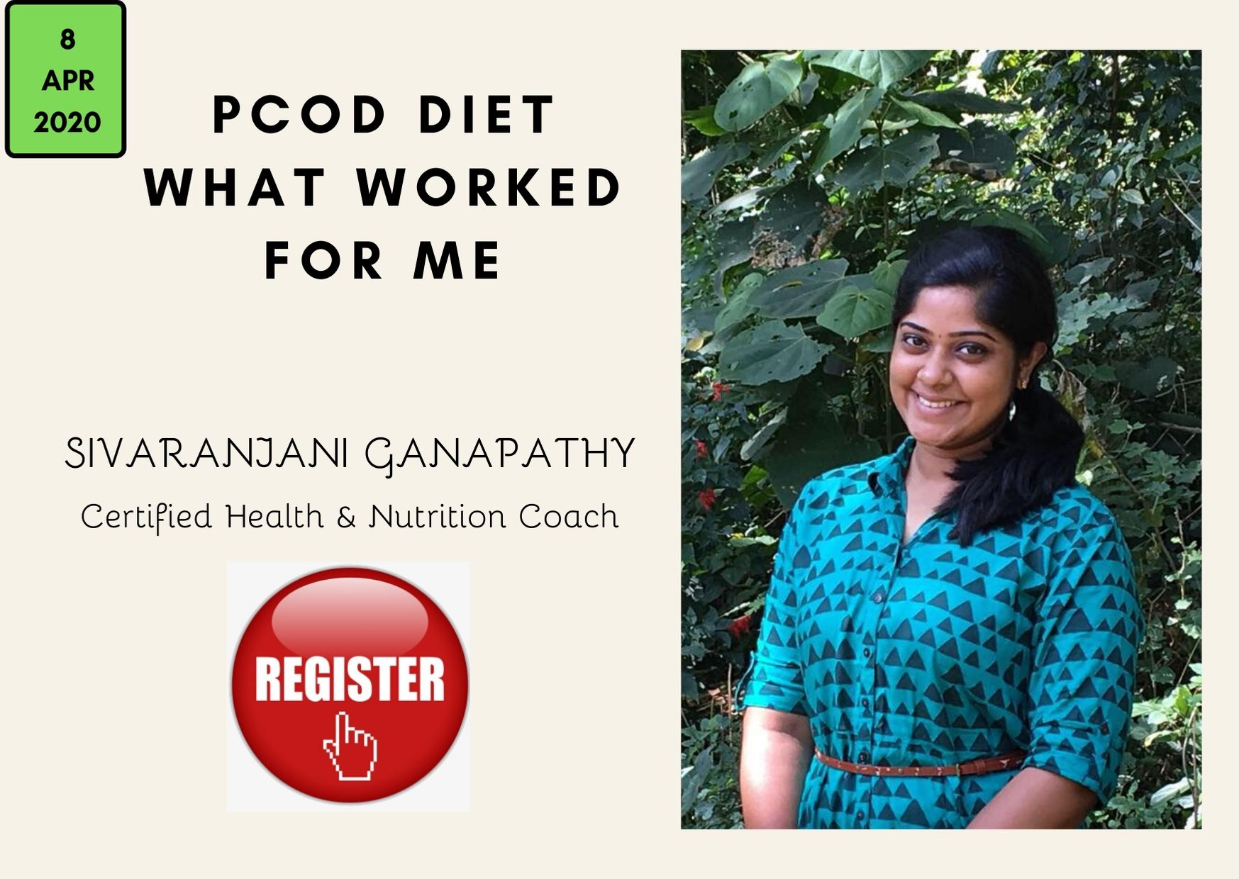 Periods, commonly has in it to cause some kind of discomfort, be it physical, mental or emotional for many. Added is the stress when PCOD becomes the identity of your menstrual cycle. This session is coming from a person, who has experience in tackling PCOD with diet, added to her qualification. Sivaranjani Ganapathy, a certified health and nutrition coach will share how the smallest of changes can bring in the biggest of effects.