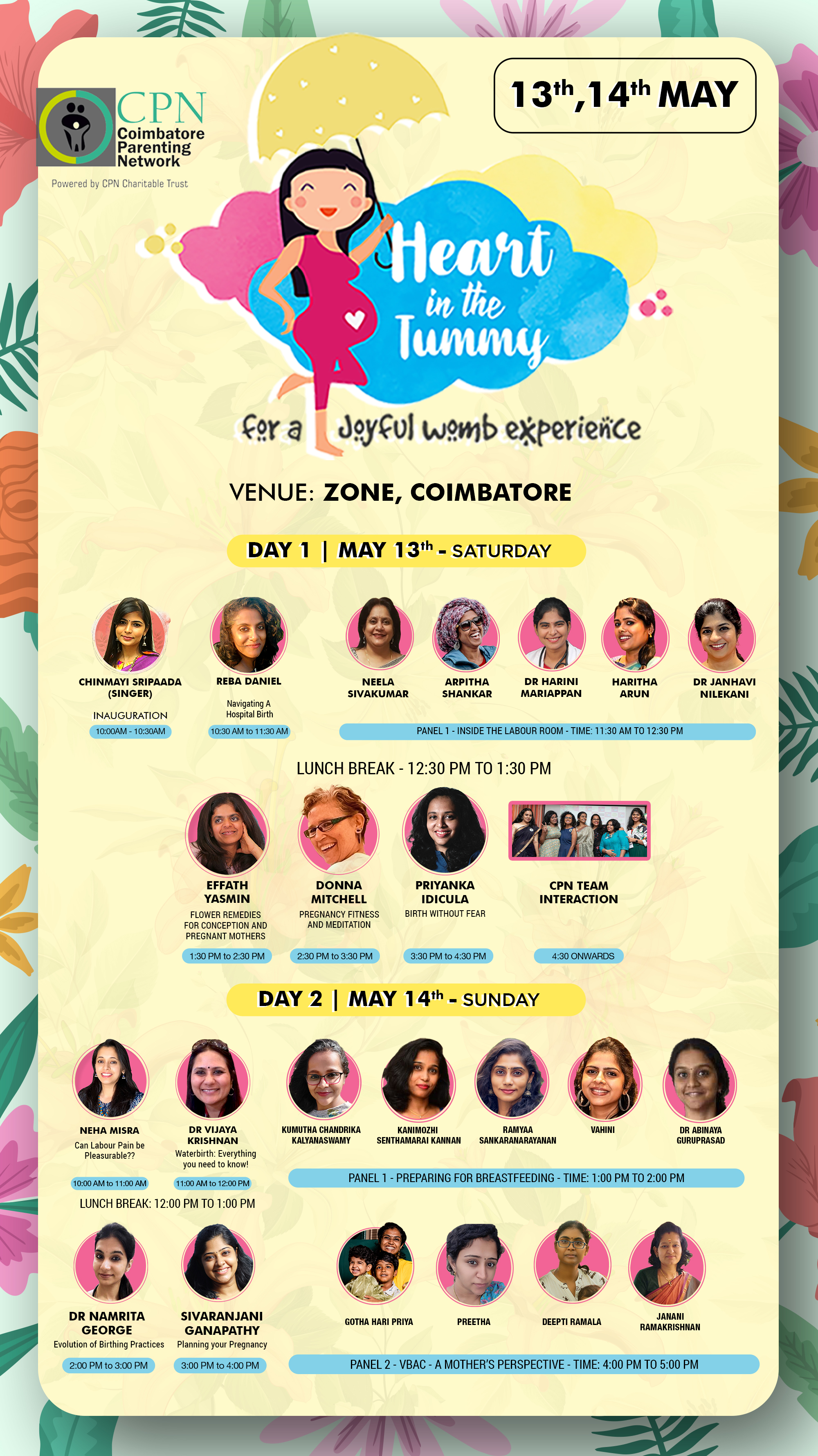 The ticket is priced at 3300/- per head for two days. This price is applicable for all the participants who are aspiring or practicing birth educators, lactation counselors, doulas or anyone who wants to or is currently working with mothers.
