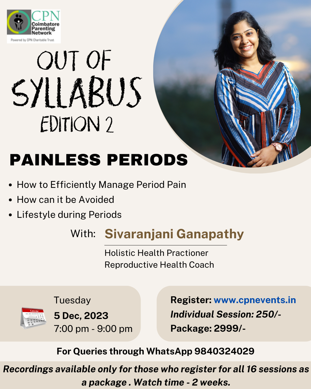 Sivaranjani will be covering the following in her session on Painless Periods: