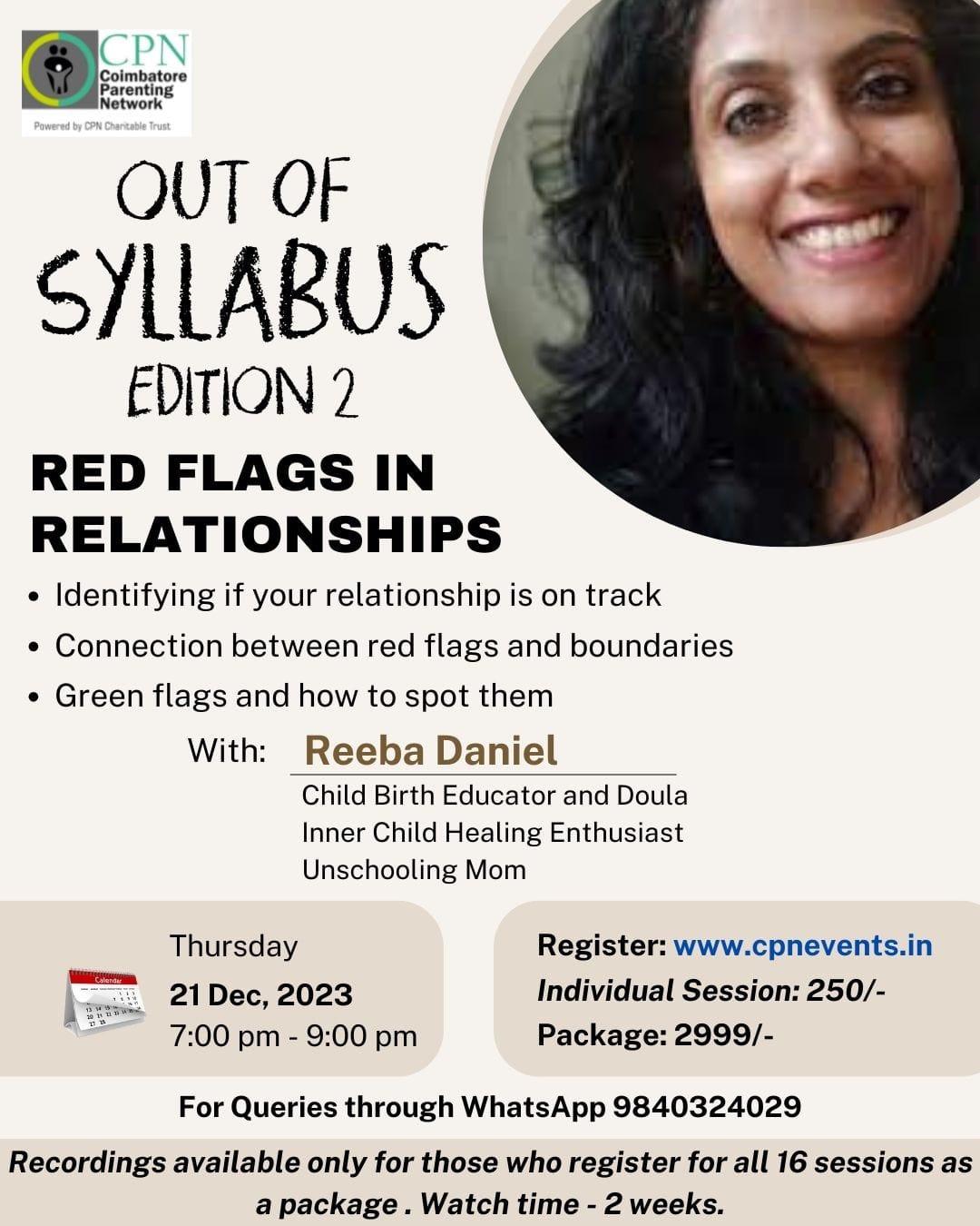 Reeba will be covering the following in his session on Red Flags in Relationships: